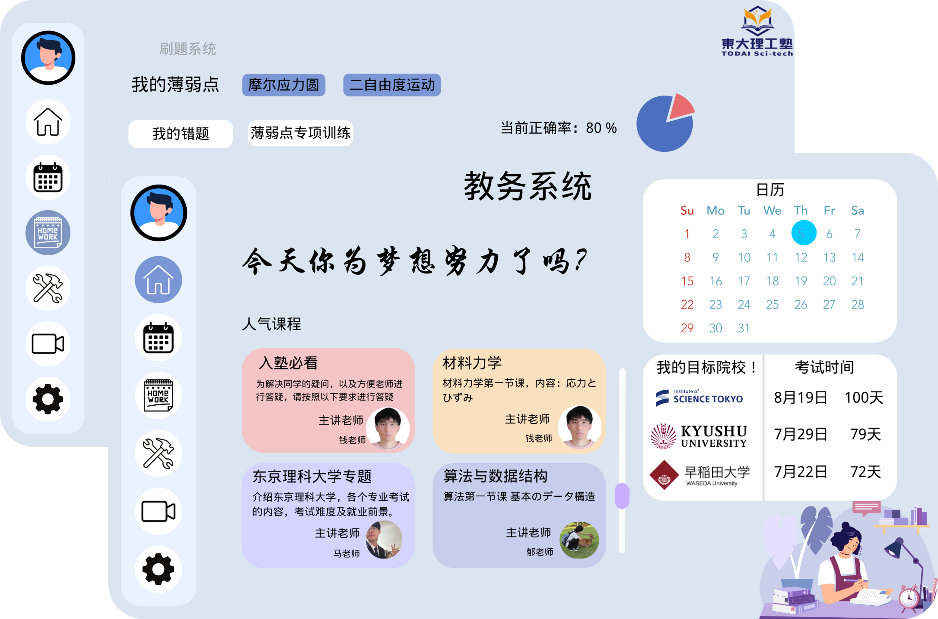 东大理工塾由东京科学大学博士团队创立。 我们不仅通过了日本最严格的理工科培养体系,也亲身经历并理解大学院入试对学生能力的真实要求。 所有课程均基于博士阶段的学习与指导经验设计,而非套用市面上的通用教材。