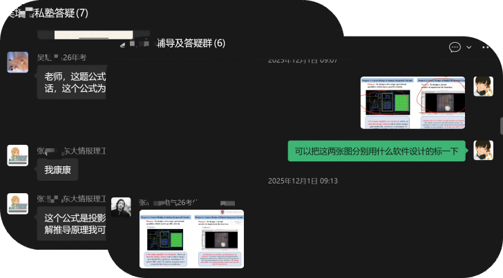 每位同学均会配备专有的班主任,实时跟进学生学习进度。提醒各大重要材料及考试时间。并且每个学生都会配有一个答疑群,随时进行提问与讲解!